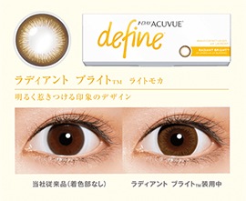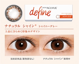 1day Acuvue Define Moist : ワンデーアキュビュー ディファインモイスト生まれ変わった、輝きのディファインは、1日中うるおって、快適なつけ心地!ワンデーアキュビュー ディファインモイストはレンズに取り込まれた 「保湿成分」がしっかりうるおいをキープし、朝つけてから、夜はずすまでみずみずしさを保ちます。 さらに「保湿成分」の働きで、レンズのクッション性が高まり レンズ表面がなめらかに。快適なつけ心地が1日中つづきます。 |