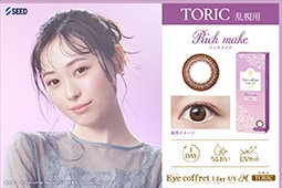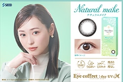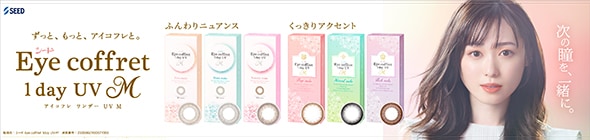 SEED Eye coffret 1day UV M : シードアイコフレワンデーUV MアイコフレMはファーストメイク(ミドルブラウン)シアーメイク(グレー)スウィーティーメイク(ブラウン)ベースメイク(ライトブラウン)ナチュラルメイク(ブラック)リッチメイク(ブラウン)の 気分やシチュエーションに合わせて、選べる全6色!! NEW!! トーリック(乱使用)スウィーティーメイク マルチステージ(遠近両用)リッチメイク アイコフレは日本のトップブランドSEEDが、日本の女の子のために作った、安心ワンデータイプサークルカラーレンズ シード独自の「スムース・エッジ・デザイン」で仕上げた、超薄型レンズだから快適なつけ心地です シミなど、肌の色素沈着の原因となる紫外線(UV)カット機能付きで瞳にも安心 気分やシーンにあわせて、7つのカラーからお選びいただけます ※ご注意ください! アイコフレはカラーによってレンズのDIA(直径)が異なります DIA(直径)14.0mm:ベースメイク/ナチュラルメイク/リッチメイク/ビューサポート DIA(直径)14.2mm:ファーストメイク/シアーメイク/スウィーティーメイク/マルチステージ ◆強度近視(ハイパワー)-12.00まで、遠視+3.00まで対応 ![]() 透明感のある瞳で